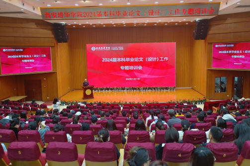 为进一步加强我校毕业论文(设计)管理工作,提高毕业论文(设计)质量,11月17日下午,教务管理中心组织召开了2024届毕业论文(设计)工作专题培训会。此次会议由教务管理中心副主任刘斌主持,各二级学院系主任、专业负责人、负责论文(设计)工作的教科研干事、2024届毕业论文(设计)指导教师代表和毕业班学习委员等300余人参会。