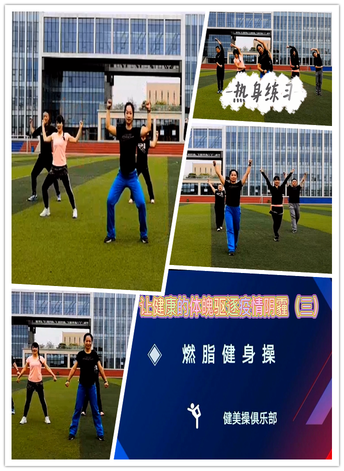 体育学院教学副院长雷耿华带领健美操俱乐部的老师们为全校师生示范“燃脂健身操”,帮助师生们缓解防疫压力,增强体育锻炼意识,提高自身免疫力,共战疫情。