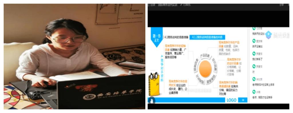 关娜老师承担国际经济与贸易专业《国际商务谈判》课程教学。为了上好第一课,关娜老师做了充分的准备。她提前在网上搜索选择与本课程相关度高的《国际商务谈判》课程视频材料,下载下来供同学们自主学习时作为参考。讲课时,她针对课程的重点和难点知识,在教学过程中充分利用“腾讯课堂”和“云班课”功能与学生互动,及时了解和解决教学过程中出现的问题。考虑到当前的疫情防控形势,关娜老师利用课间10分钟,与学生尽情互动,播放了医护人员献唱的公益抗疫歌曲《只为那一身白衣》,为同学们加油鼓劲。