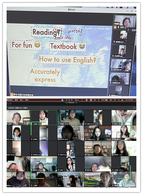 人文与国际教育学院英语专业《基础英语》课程组的老师们,利用“腾讯会议”的“互动批注”功能,通过师生“互动批注”,让学生掌握教学重点内容。在“腾讯会议”平台,不仅作为会议主持人的老师能够发起“互动批注”,时刻关注学生学习状态和理解程度,当同学们遇到生词难句的时候,还能通过学生的会议端口,直接在会议平台的演示文稿上进行标注,极大地提升了课堂互动和课堂效率。