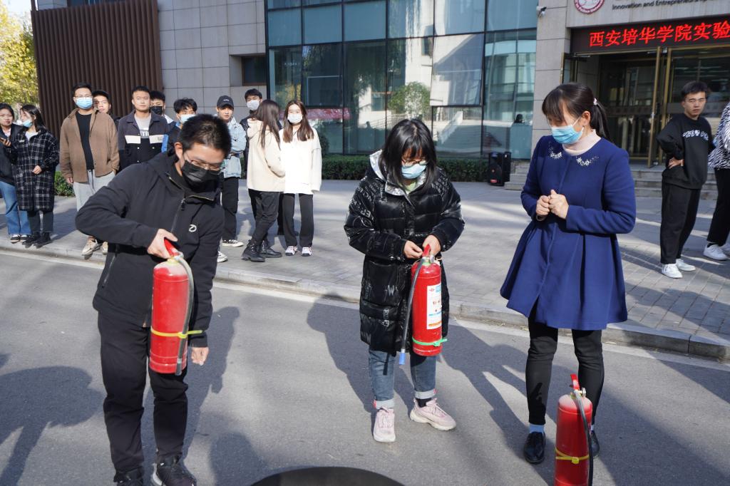 随后,消防管理干部向大家展示了灭火器的使用方法,科普了常见火灾类型的多种应对办法,师生代表做了现场模拟扑救。