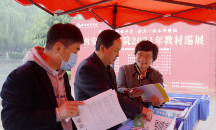 4月21日,学校举行2021年全国高校出版社教材巡展活动,高等教育出版社、北京大学出版社、复旦大学出版社、人民大学出版社、机械工业出版社、清华大学出版社、外语教学与研究出版社等20余家出版单位前来参展,带来近几年出版的最新优秀教材、规划教材、精品教材及配套教辅样书3000余册,数量丰富,涵盖了工学、理学、哲学、管理学、经济学、教育学、文学、艺术学等我校各专业需要的教材,吸引了众多教师及学生参与,教师选中的样书通过扫码填表免费赠送。展出期间,学校常务副校长胡俊生、教务管理中心主任铁卫、常务副主任唐学学到展会现场了解巡展活动开展情况。