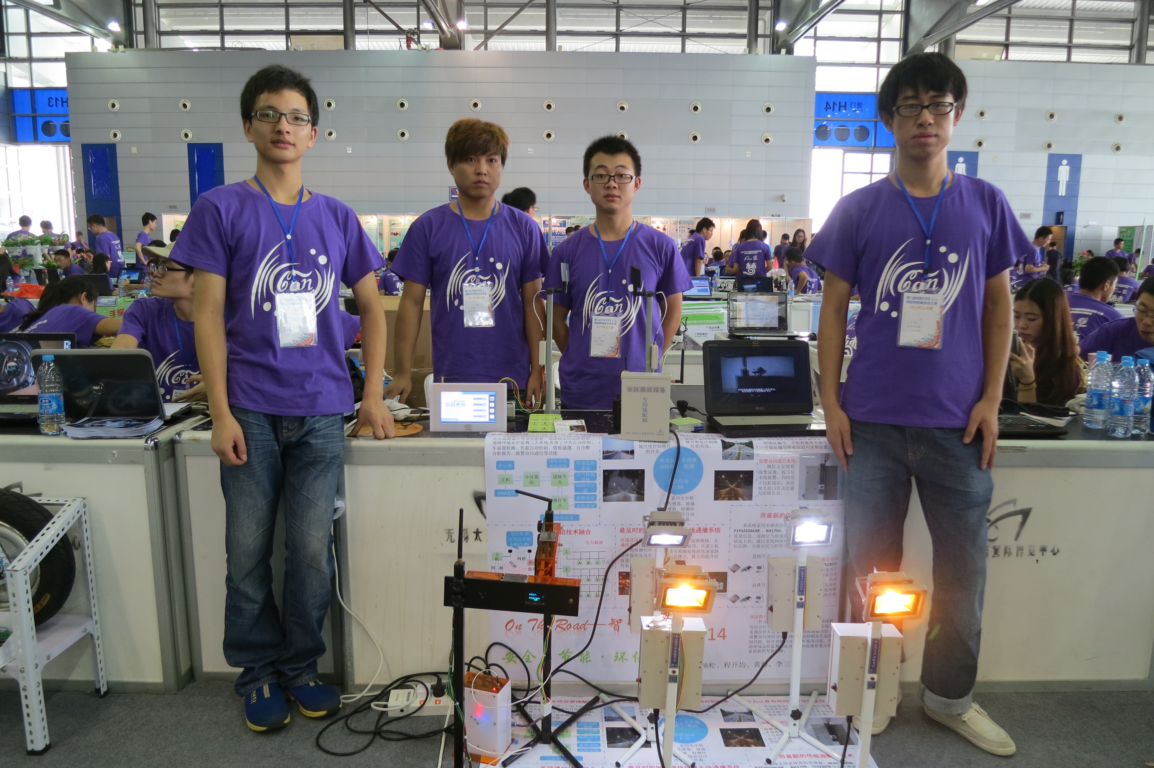 由王旭东老师指导,学生李楠松、程开均、李三强、黄帅小组设计的作品《on the road》以全新的交通智能照明及信息化管理理念、多项传感器技术与通信技术的融合,得到了评委的肯定与现场观众的支持,获得全国总决赛二等奖;学生董康、朱敬川、安云云、雷立小组的作品《Hive Net》以更简单的智能家居系统为设计思路,融合了包含云服务、智能控制、智能安防、智能传感器系统等实用功能,取得全国总决赛三等奖的优秀成绩。