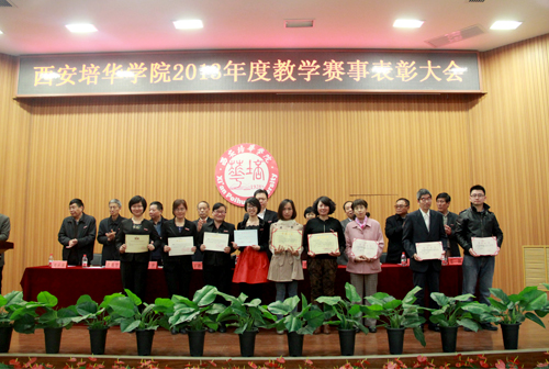 颁奖大会由教务处肖建军处长主持,张栓升副校长了宣读《西安培华学院关于对2013年度教学赛事获奖者进行表彰的决定》,对在2013年度各项教学竞赛中取得了优异成绩的师生予以表彰奖励。表彰的项目共有41大类109项、485人次,其中有134人次在全国59个项目中获奖,为学校赢得了荣誉。