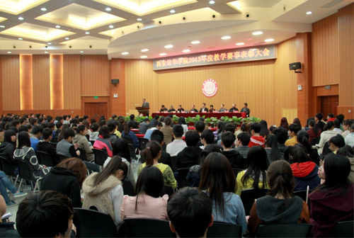2014年4月2日下午,我校在长安校区明德楼四层报告厅召开了2013年度教学赛事表彰大会,理事长姜波,校长王拴才、书记周庆华、副校长陈胜秋、张栓升、段茂贤、王根性、刘应南,校长助理姜朗出席大会,各院(部)教学副院长(副主任)以及相关处(室)负责人及500多名师生参会,共同见证了2013年度学校师生在各项教学赛事中取得的骄人成果。