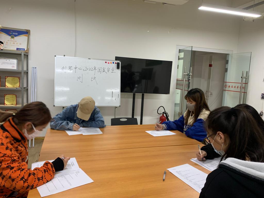 入驻创客中心的创新创业项目团队成员通过学习《2022年国家安全培训资料》,以现场开卷形式完成答题并在线提交试卷,题目内容包括《国家安全法》、《反恐怖主义法》和《反间谍法》等法律法规知识。
