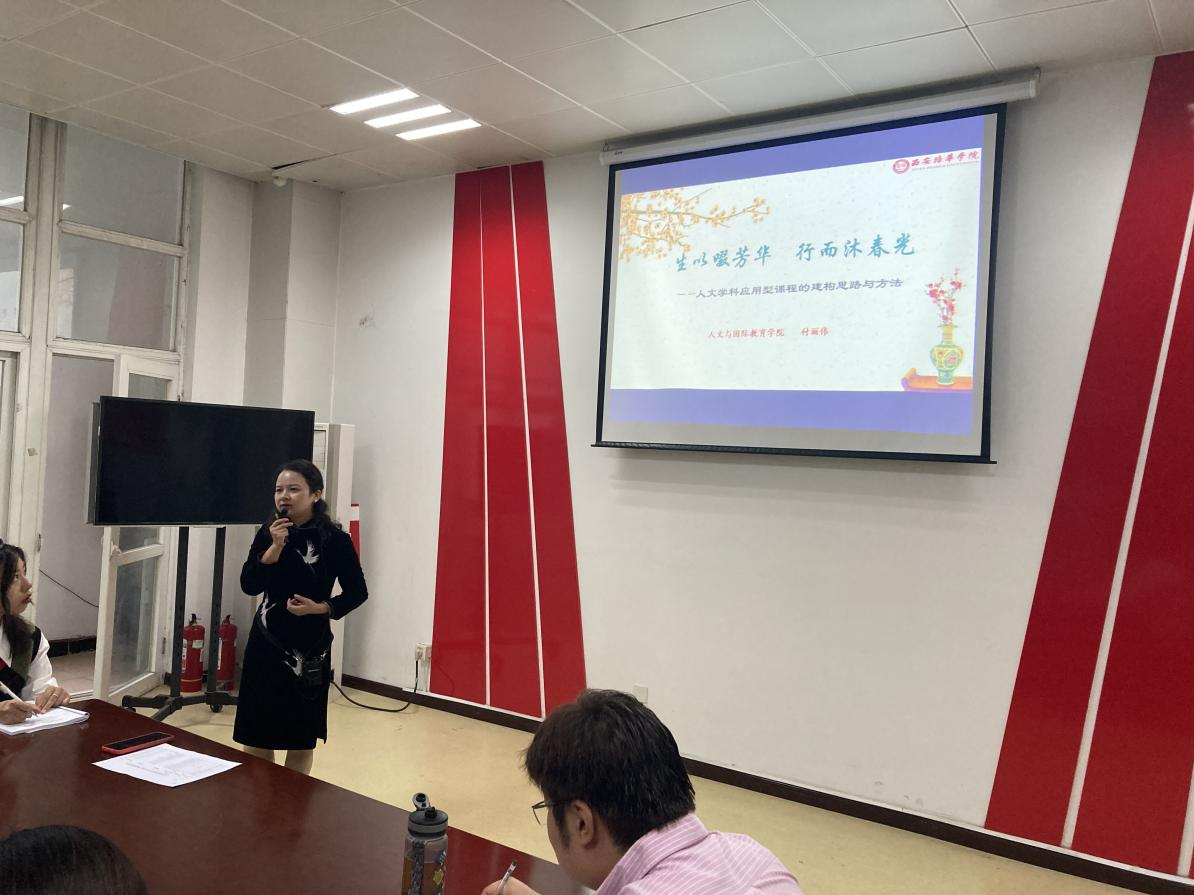 为了更好地贯彻西安培华学院“地方性、应用型、国际化”的办学定位,开拓青年教师应用型课程构建思路,培养创新型教育人才,人文与国际教育学院于2021年9月24日下午两点在格物楼第四会议室成功举办了关于“人文学科应用型课程的建构思路与方法”的教师工作坊培训。