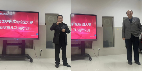 首先,侯副主任依次宣读了2022年全国护理解剖学绘图大赛、第六届“金斯瑞杯”中国大学生生物化学歌曲大奖赛、陕西省首届“国希望云解剖”人体解剖学知识竞赛获奖学生名单,并邀请院领导、系领导及指导教师给获奖生颁发奖状及奖品。