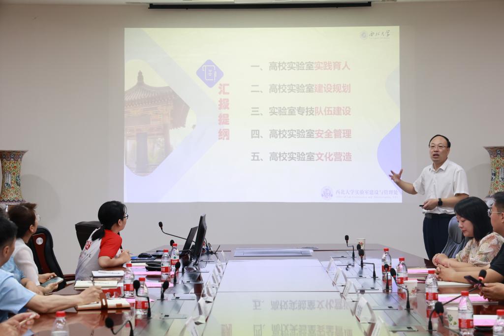 随后,李剑利处长以《立本强基 铸魂创新—新时期高校实验室建设管理与育人模式探索》为题进行了专题培训。他从高校实验室实践育人、建设规划、队伍建设、安全管理以及文化营造等五个方面介绍了西北大学在实验管理方面的做法和经验,报告内容丰富、系统全面、针对性强,对我校进一步加快实验室内涵建设、规范实验室安全管理等工作具有指导和借鉴意义。会后,李剑利处长与参与培训的领导和老师针对实验管理中的问题进行了互动交流。