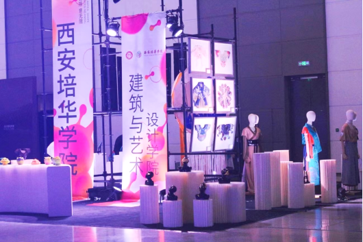 在四大主题展馆中,西安培华学院建筑与艺术设计学院的作品布展于5馆A10展区。展品以服装与服饰设计专业与工艺美术专业设计作品为主,体现了新风尚与传统的碰撞。