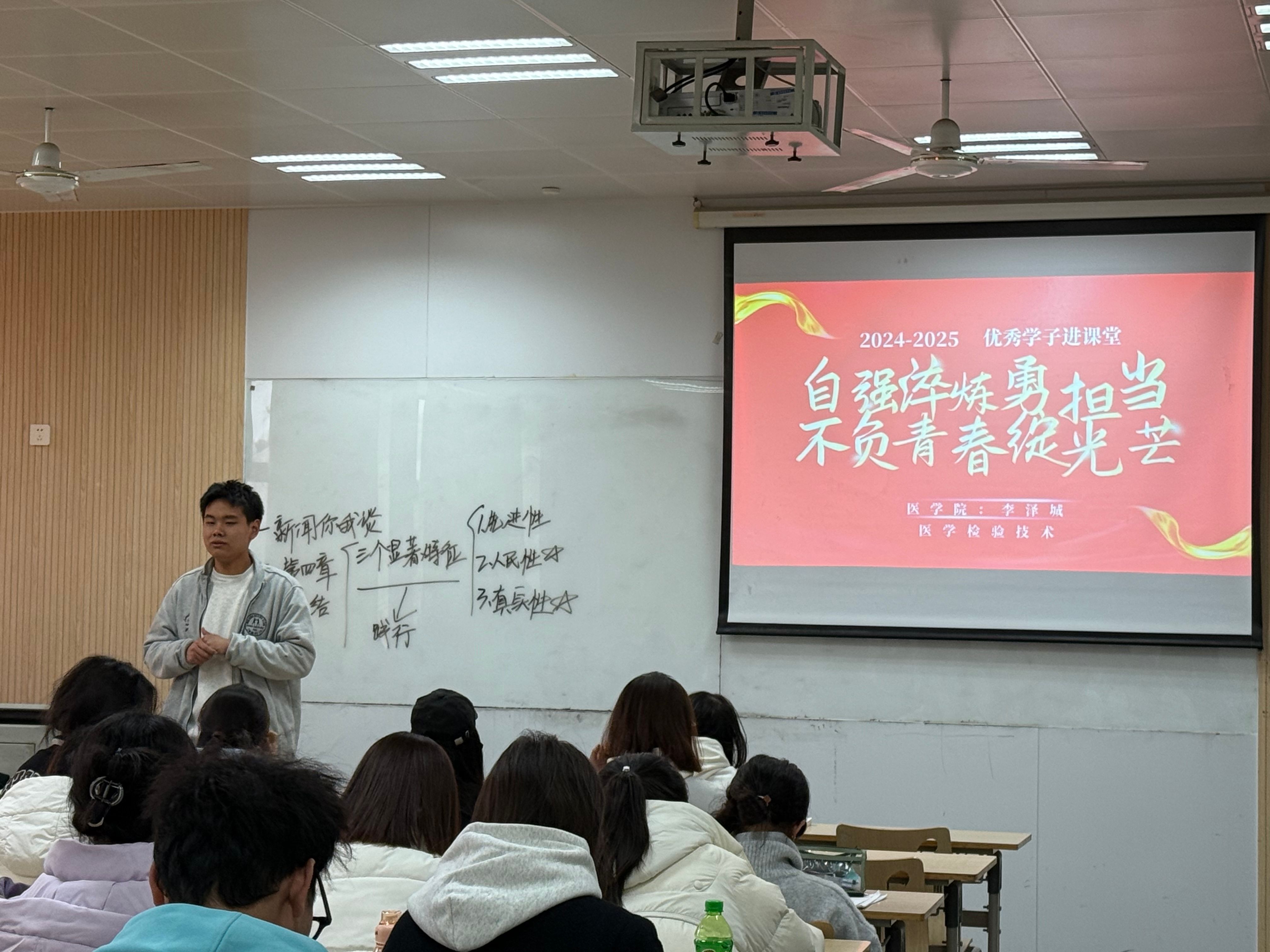 医学院国家奖学金候选人李泽城同学与学弟学妹们进行了题为“自强淬炼勇担当,不负青春绽光芒”的分享。