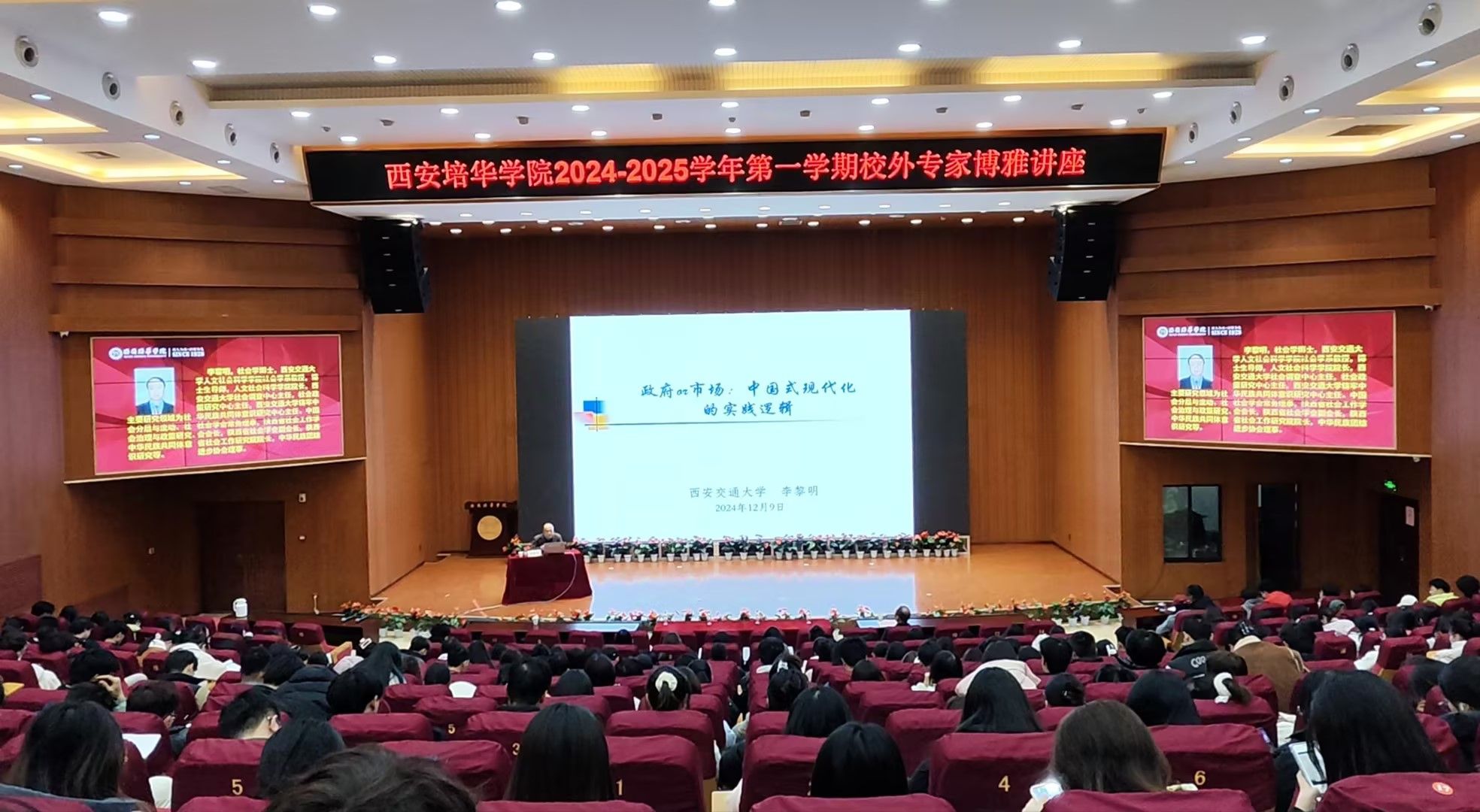 为进一步丰富学生理论知识,拓宽学生视野,充分发挥“博雅讲座”在培养学生人文素质教育方面的作用,12月9日下午14:30-16:30,教务管理中心邀请西安交通大学人文社会科学学院院长、博士生导师李黎明教授为我校师生进行了以《政府or市场:中国式现代化的实践逻辑》为主题的博雅讲座活动,参加讲座的有教务管理中心副主任王琳、教学运行主管、教学者干事及各二级学院学生400余人,讲座由王主任主持。