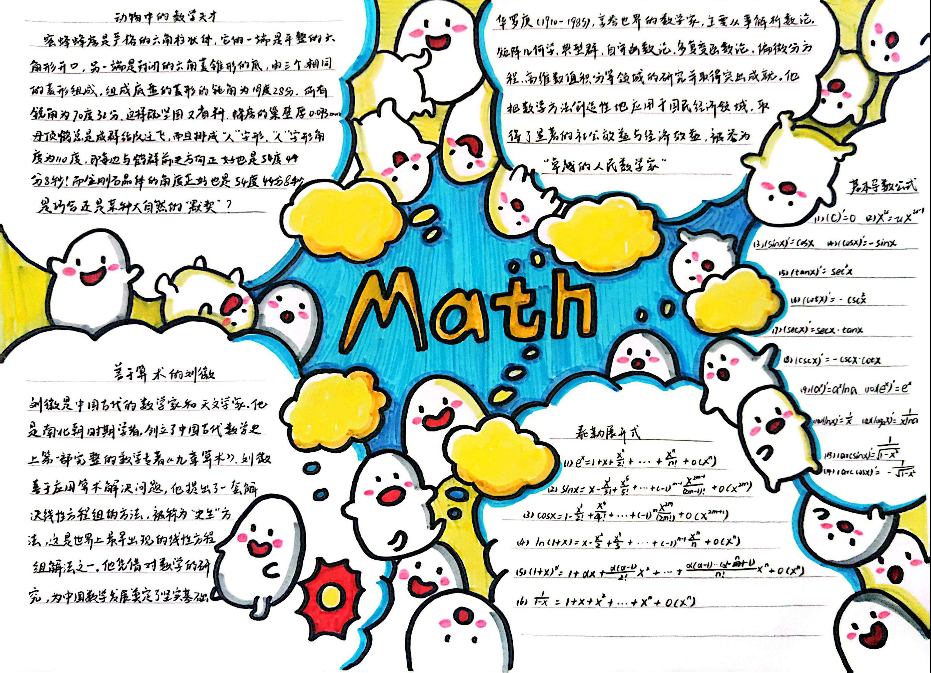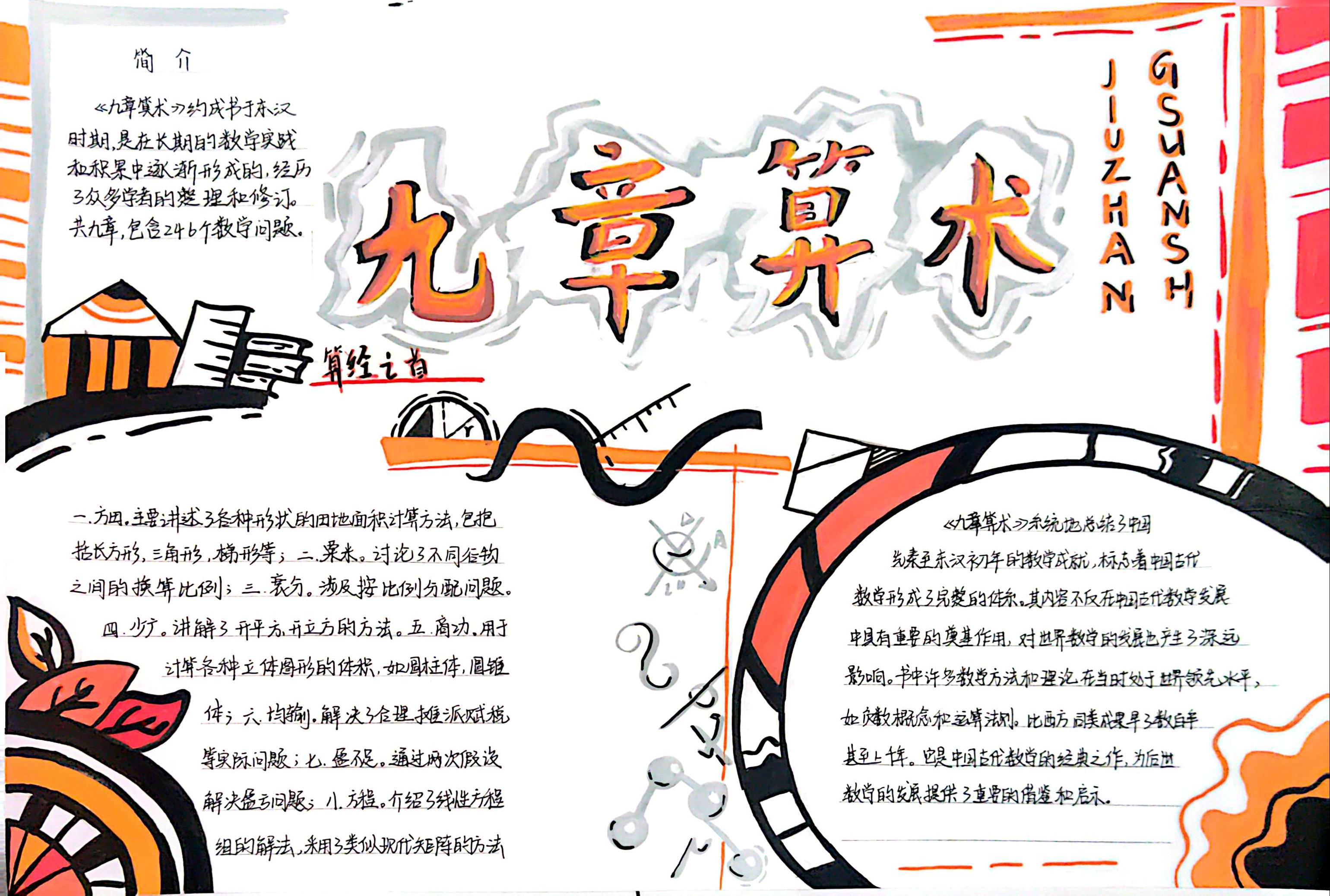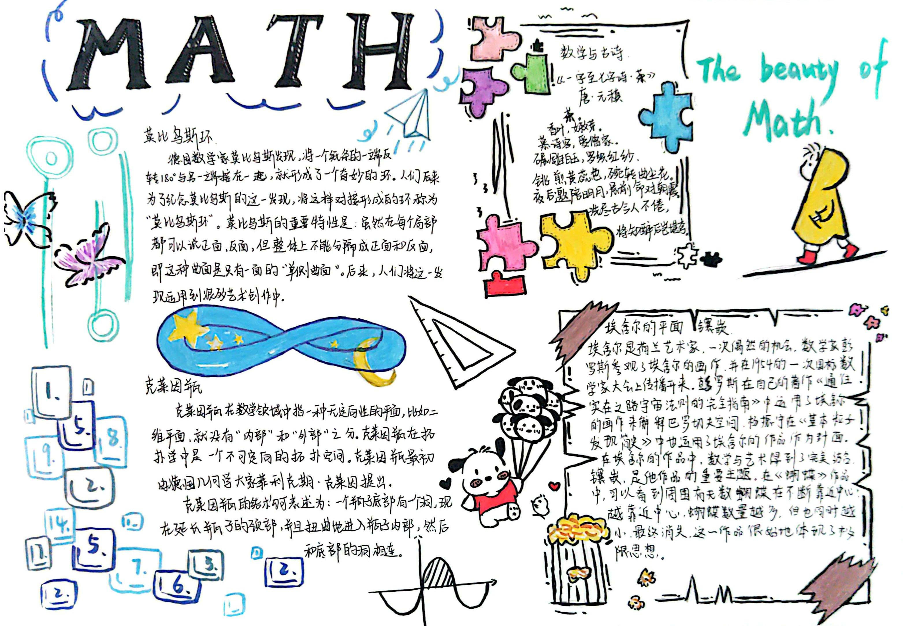 同学们充分利用课余时间,通过查阅书籍、浏览专业网站等方式,广泛收集数学文化相关资料。从古代数学名著《九章算术》的精妙算法,到现代数学在科技领域的广泛应用;从数学史上的著名定理,到数学家们的传奇故事,大家深入挖掘数学文化的内涵,精心构思手抄报的内容与版面。