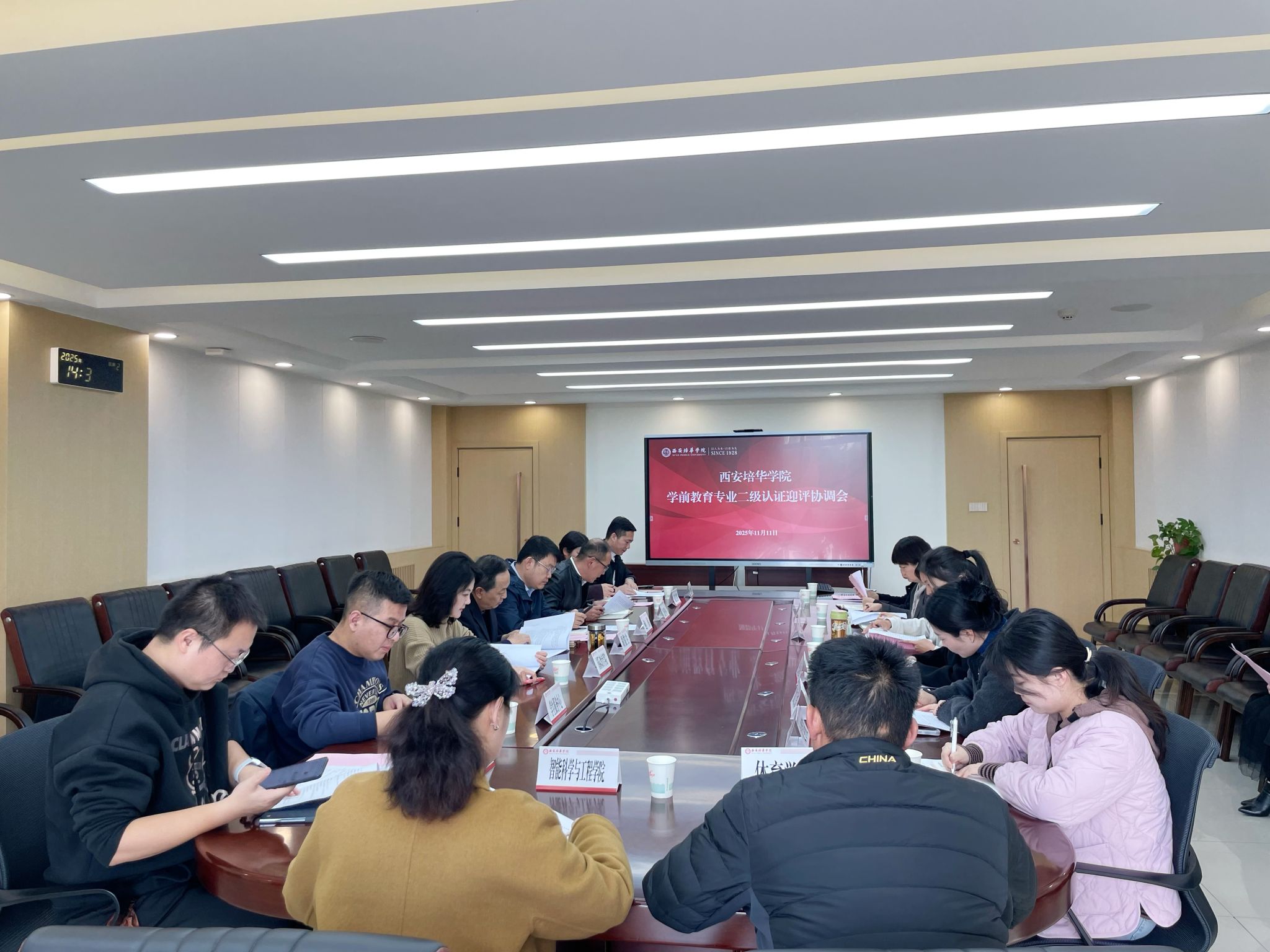 11月11日,西安培华学院召开学前教育专业二级认证迎评协调会,常务副校长胡俊生、校长助理鲍伟、党委工作部、校长办公室、教务管理中心等各相关职能部门负责人,国际教育学院、文学院、马克思主义学院、智能科学与工程学院信息技术公共课教研室、体育学院公共体育教学部负责人参加会议。会议由教务管理中心王琳主任主持。