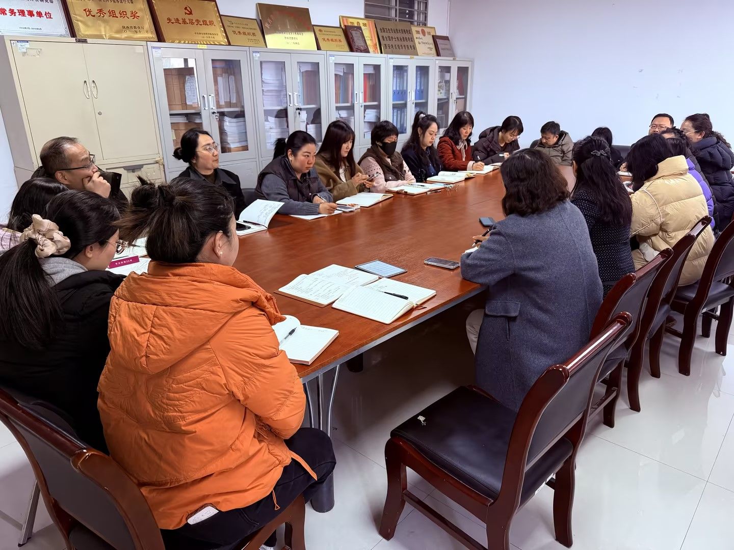会上,刘改琳主任首先对中心领导分工及各岗位人员工作职责进行全面梳理、明确细化。她结合新学期工作重点,逐一明确各岗位核心任务、工作标准与协作要求,进一步理顺工作流程、压实工作责任,坚持“成果导向”推动教务管理工作向规范化、精细化、高效化方向迈进。
