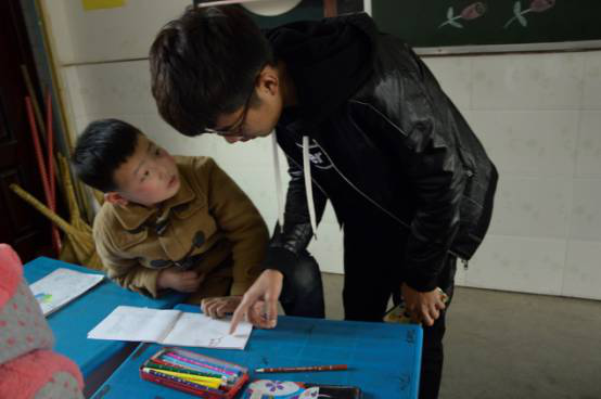 艺术设计学院青年志愿者协会干事为小朋友传授美术知识