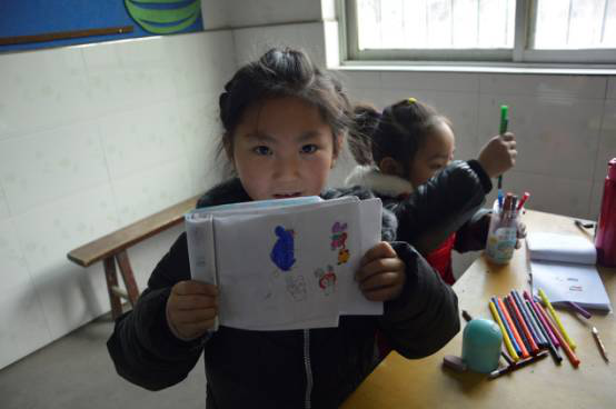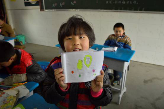 向师家村小学一年级的小朋友展示我们的美术作品以及手绘漫画