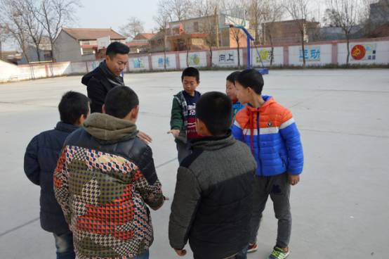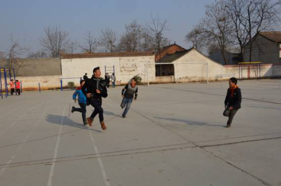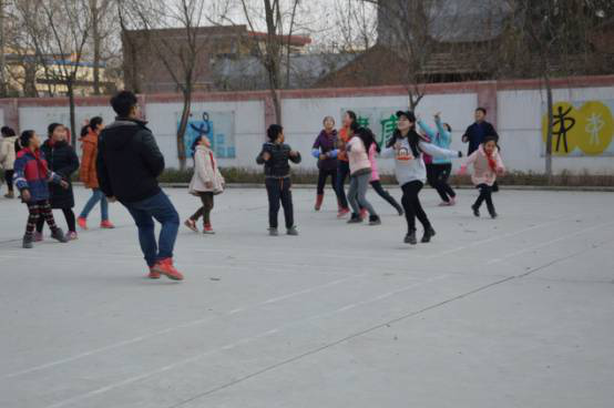 艺术设计学院干部干事课下与师家村小学小朋友在操场做游戏