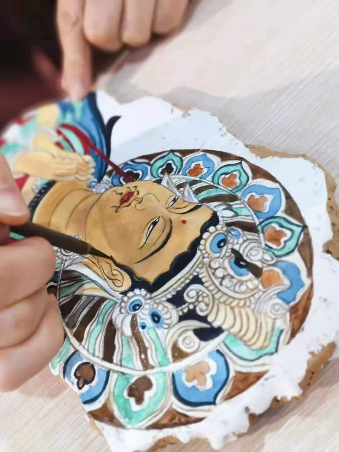 三、壁画临摹技法:过稿、勾线、上色、细部刻画、做旧、画面调整