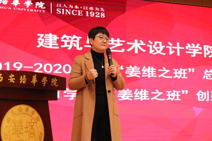 徐院长讲到,通过各班展示过去一年“姜维之班”的汇报成果,让她感受到了建艺学子的努力和优秀。建筑与艺术设计学院从2017年建创“姜维之班”到现在已经历时四年,在这个过程中我们有总结,同时也积累了一定经验,代表学院由衷感谢师生在创建“姜维之班”过程中所付出的努力。徐院长表示,“姜维之精神”是对姜维之老先生一生办学理念的凝练,也是社会主义核心价值观的具体要义。姜维之老先生一生淡泊名利,两袖清风,却始终心系培华发展,心系学生成长,为民办教育奉献了自己宝贵的一生。总结最后,徐院长希望我院学生积极投入到“姜维之班”的创建中来,感受建创过程中带来的变化与不同,感受在大学生活中通过努力为班级做出贡献的喜悦,期待2020—2021学年学院能够创建出更多更优秀的“姜维之班”。