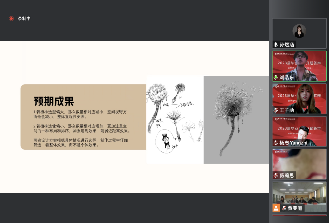 答辩开始,工艺美术专业带头人杨志副教授就此次答辩流程作了简要说明,提醒学生在答辩过程中注意语言表述,认真记录,以便进一步完善开题报告。开题答辩分为学生陈述、老师点评与提问、学生回答问题等环节。学生依次对设计的选题背景、研究目的和意义、研究内容、预期成果和创新点进行阐述汇报,答辩陈述结束后,老师就目前开题情况作出点评提问,指出学生需改进的内容以及下一步计划。同学认真记录各位老师意见,继续优化作品方案,跟进论文框架。