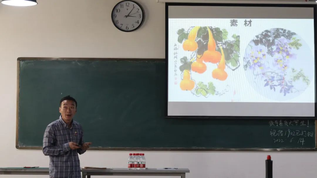 为了进一步加强师德师风建设,提升我校教师教学和科研能力水平,提高教育教学质量,积极参与和推进应用型课程改革及课程思政建设,增加我校校园艺术文化气氛、弘扬中国传统文化,增进各单位间的学习交流,我院于2022年9月28日下午主办2022年度教学科研沙龙活动——墨韵师风。此次活动分为两个部分,第一部分由建筑与艺术设计学院院长助理刘清颖老师带领大家学习“修师德、树师风”主题讲座。第二部分由本院视觉传达设计专业老师甄昊结合自身多年的中国画教学及丰富的实践经验,以中国画——扇面为主题,让每位教师在现场用亲自创作的方式,更全面地体验与感受中国传统文化艺术。