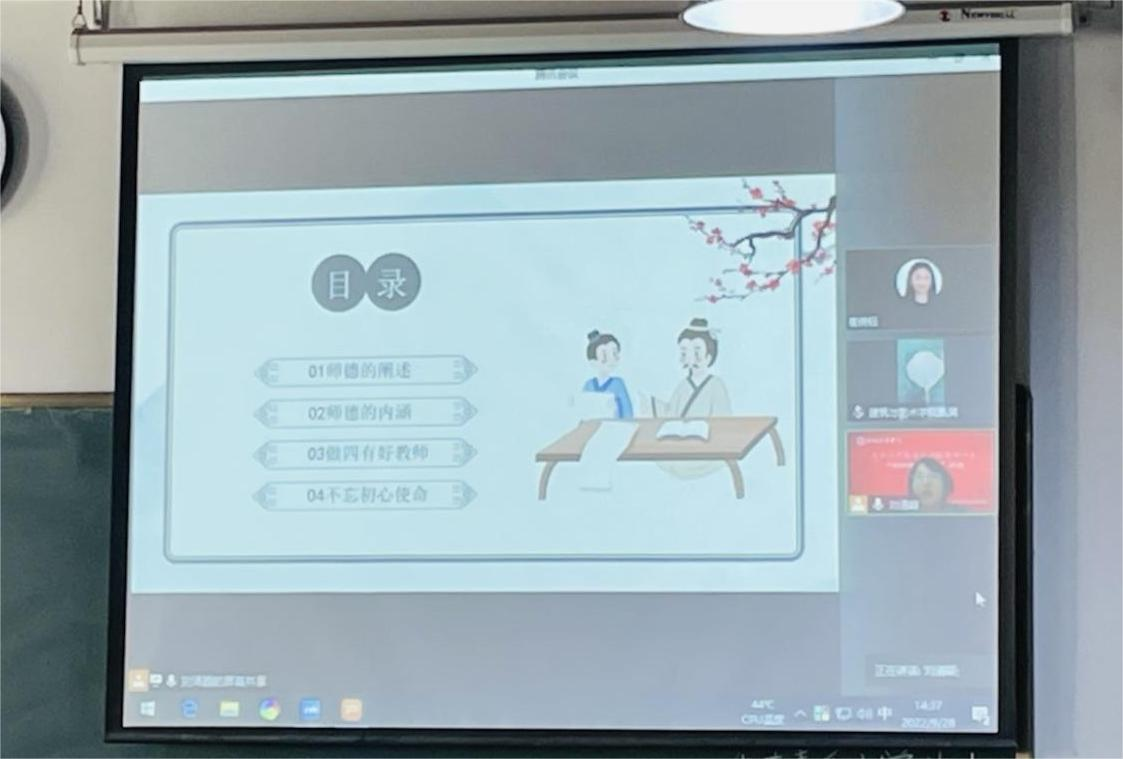 教育是太阳底下最光辉的事业,而师德就是教育的光辉;教师是人类灵魂的工程师,而师德就是教师的灵魂。刘清颖助理采用线上讲座的方式带领大家一起学习师德师风,做“四有”好老师,“师爱为魂,学高为师,身正为范,理念为先”,师德是教师在从事教育活动中必须遵守的道德规范和行为准则,以及与之相适应的道德观念、情操和品质,它体现着社会和人民对教师的希望和要求。
