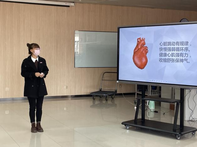 首先由医学院教学副院长王菊宁副教授致辞,并作主题介绍。王院长强调心脏对人体的最重要的作用就在于它是人体的血液运输泵,就像一个水泵,能够推动着血液在全身流动,为机体的各个重要脏器提供氧气和营养物质,同时还能把代谢的废物如二氧化碳等通过肺和肾脏等器官排出体外。它是生命的原动力。现如今,患心脏疾病的人越来越多,所以,今天大家一起来了解心脏的生理结构,熟知心脏的工作过程,掌握心脏常出现的生理反应,做好心脏的保护措施。