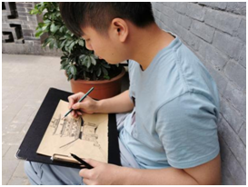 王家大院的建筑格局,继承了中国西周时形成的前堂后寝的庭院风格,既提供了对外交往的足够空间,又满足了内在私密氛围的要求,做到了尊卑贵贱有等,上下长幼有序,内外男女有别,且起居功能一应俱全,充分体现了官宦门第的威严和宗法礼制的规整。同学们在穿过层层建筑群后由上而下领略到建筑的整体面貌,也是在走进各进院落后,深刻感受到当地“土包墙”建筑的独特魅力,同学们找到各自喜欢的节点仔细研究并认真进行刻画。