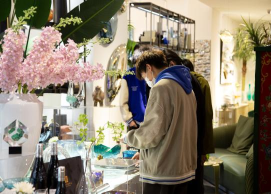谈笑间,同学们触摸认识了各种艺术家具品的材质,亲身体验不同的产品,专业介绍人员在讲解展示家具材质与功能的同时,耐心地解答同学们的疑问。