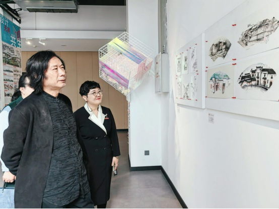 活动前,蔺宝钢教授、郭继锋教授及杨志博士前往学术交流中心参观师生作品展。