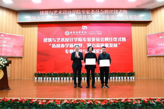 为庆祝西安培华学院建校95周年,助力学校及学院高质量发展,10月28日,由建筑与艺术设计学院主办的“专家委员会聘任仪式暨‘拓展办学新视野,聚力高质量发展’专业建设与发展论坛”在西安培华学院明德楼报告厅举行。西安培华学院理事长姜波博士、学术委员会主席、副校长刘越莲教授、专家委员会全体委员、企业与社会人士、学校各职能部门领导、学院领导、各专业负责人、系主任、学院全体教职工、校友代表及学生代表共200余人参加聘任仪式及论坛。通过线下论坛交流分享建筑类、艺术类学科发展及教学的前沿信息,探讨发展路径,深入研究学科融合交叉和数字化转型下的教育教学工作,助力更好地落实立德树人,培养学生能力,应对发展挑战,服务区域创新发展,实现高质量发展。聘任仪式由学院党委书记兼行政副院长王飞主持,论坛由专家委员会秘书长杨志博士主持。