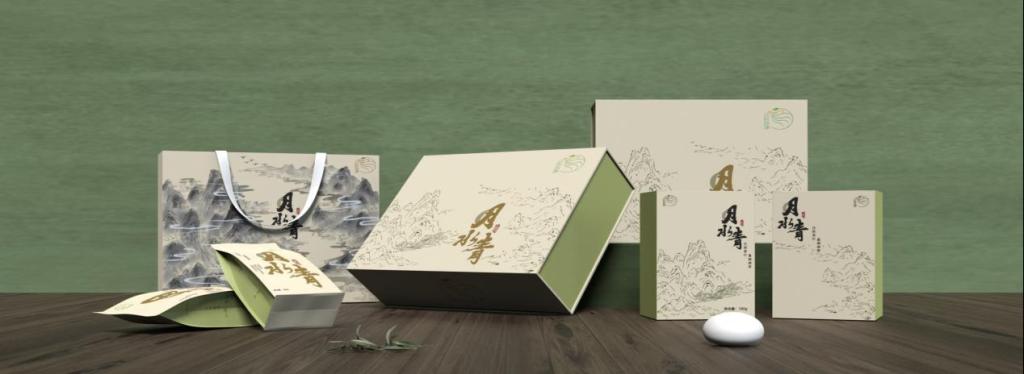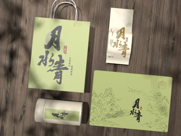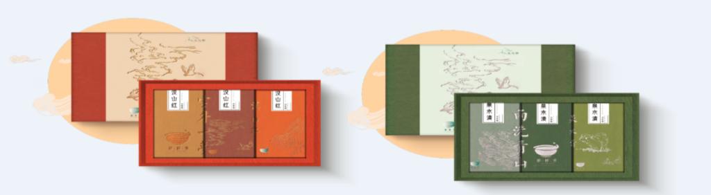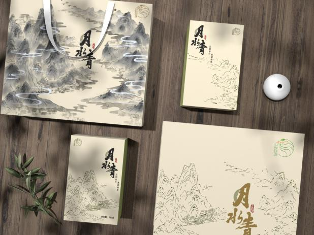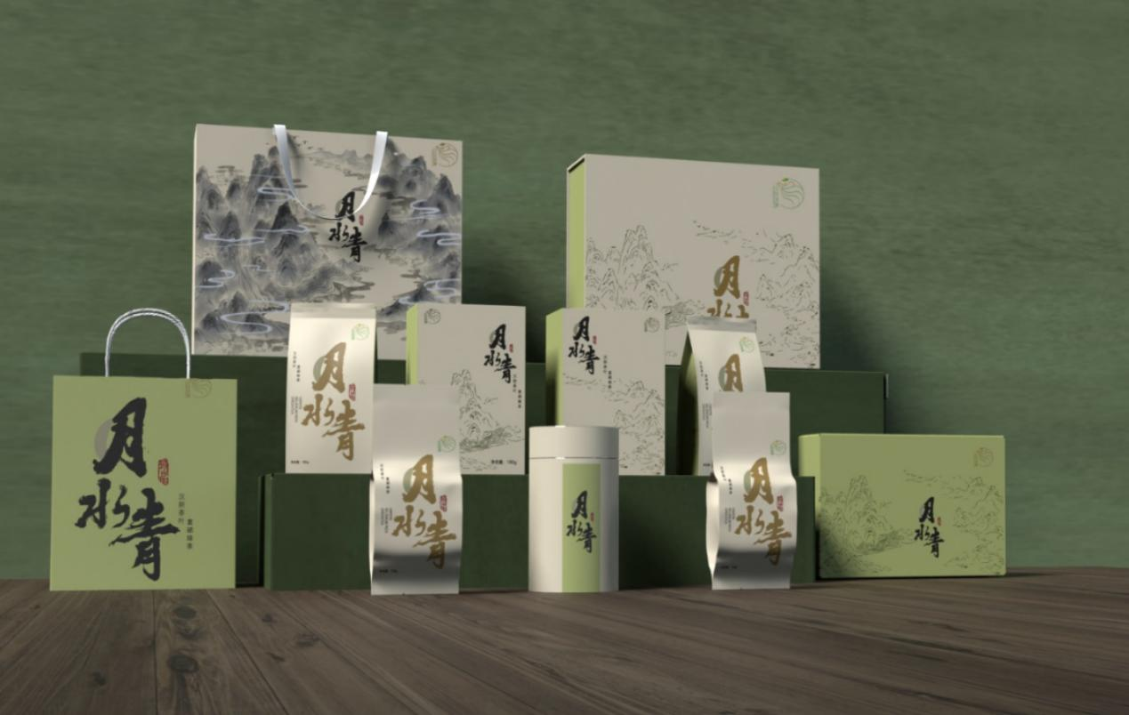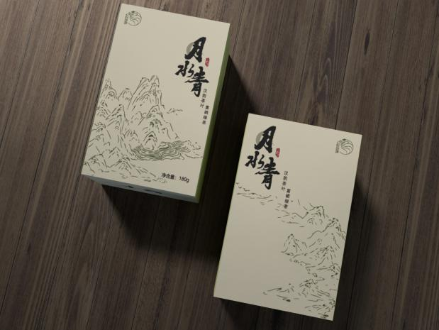 包装采用水墨插画的方式展现汉阴富硒绿茶的生长环境,融入汉阴地貌特征和元素,刻画了汉阴县著名风景名胜——凤凰山,种植茶叶的梯田和孕育汉阴美景的母亲河——月河,凸显了地域文化。整体包装设计突出了当地茶叶种植的生态环境,脱离茶叶包装惯有的刻板印象。