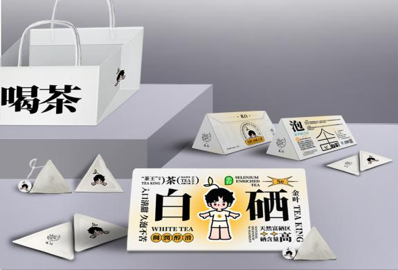 茶叶包装形态多种多样,设计从精致、年轻化的角度出发,选择了“三角”样式的包装形态,因此做出了一系列包装设计,如:三角包装盒、三角个包装袋、三角茶包。