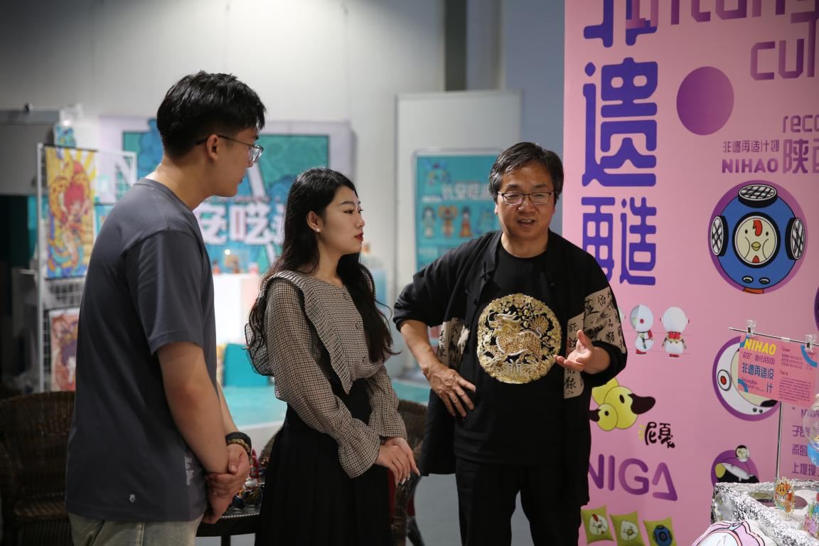 在该环节中,“泥叫叫”非遗传承人,陕西省非物质文化遗产项目“泥叫叫”制作技艺传承人,陕西省旅游协会非物质文化遗产分会秘书长,中国长安非遗乡集创始人、乡村振兴示范执行人,陕西乡集文化发展有限公司董事长杨帆老师和唐流彩技艺传承人张双敏老师就乡村振兴背景下非遗传承与视觉传达专业发展融合,校企合作与专业创新创业发展的重要性等问题表达了自己的看法,并针对学生作品的市场应用情况进行预估,对学生创新创业发展给予一定的鼓励。