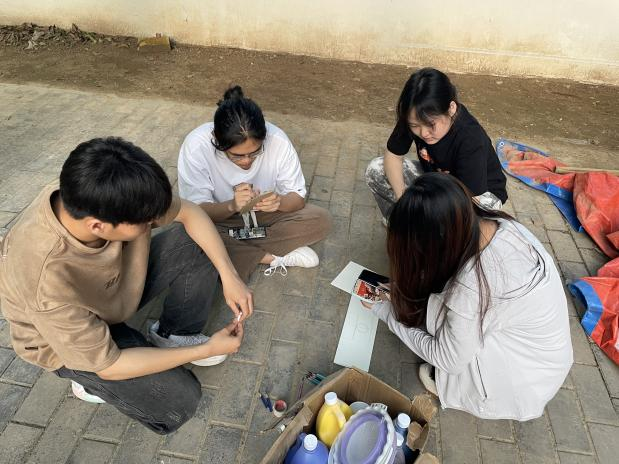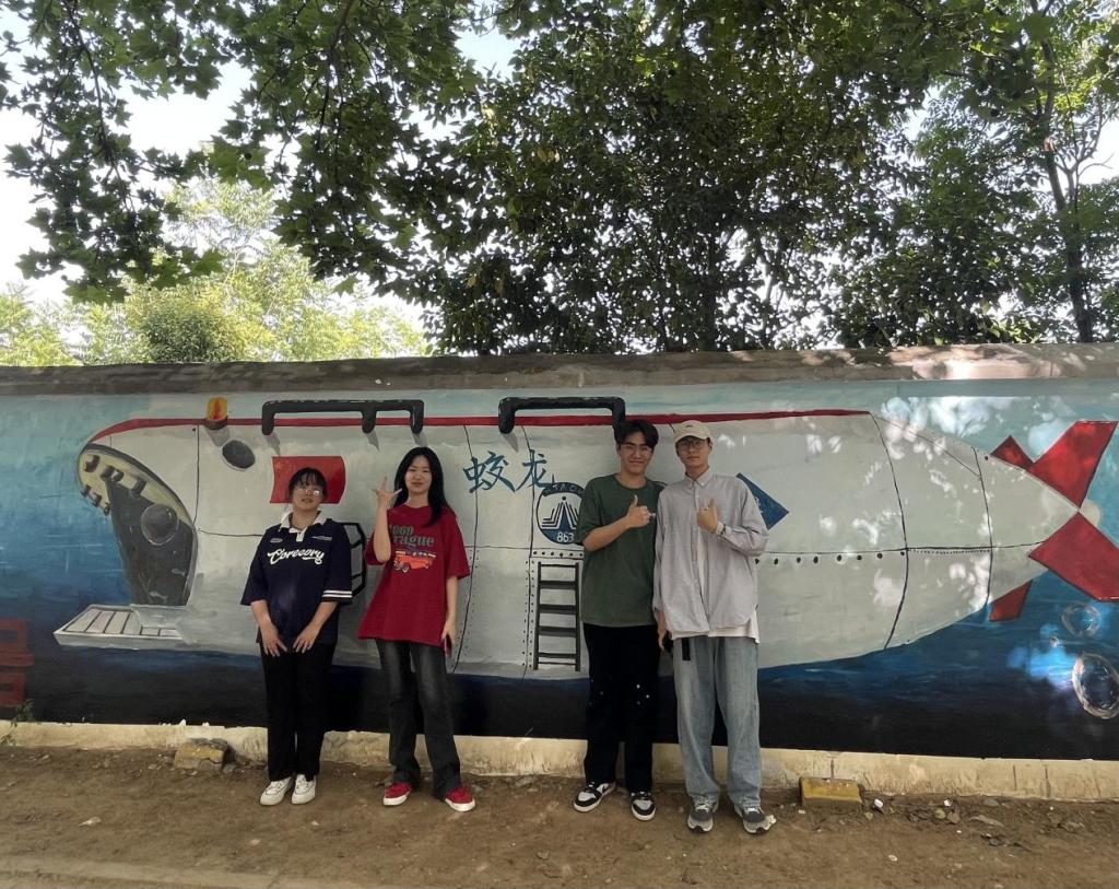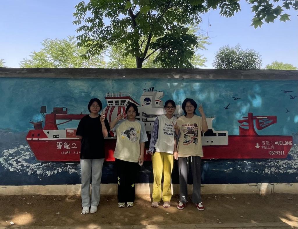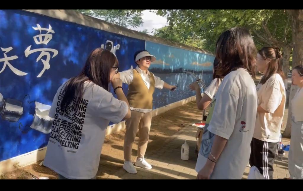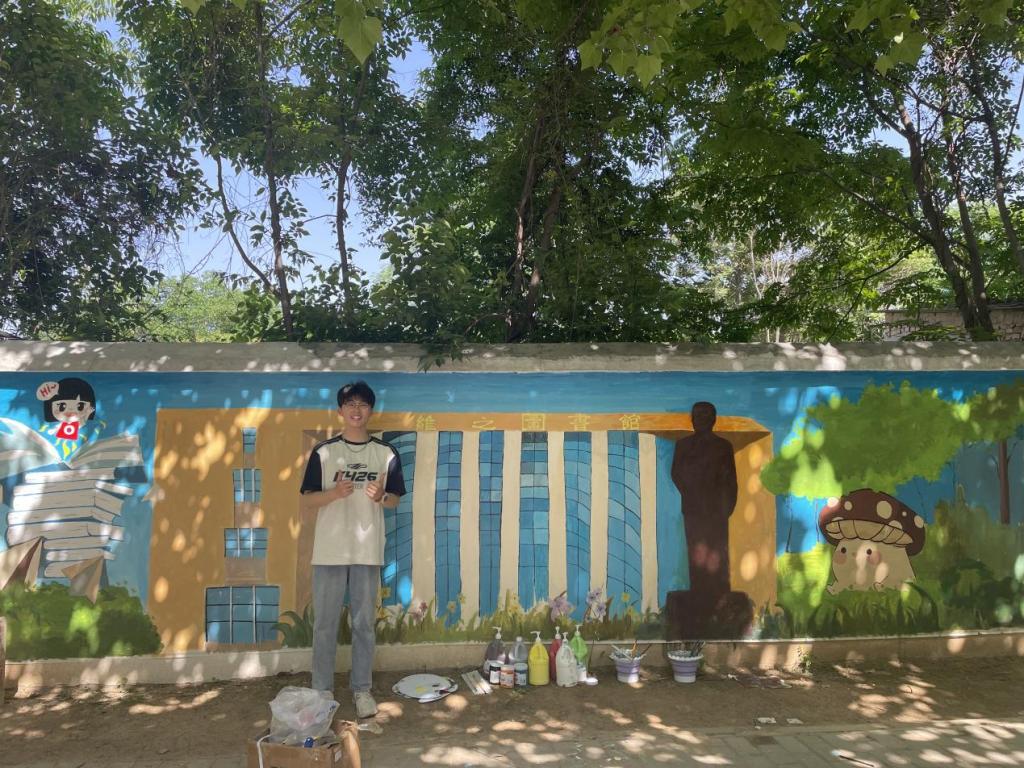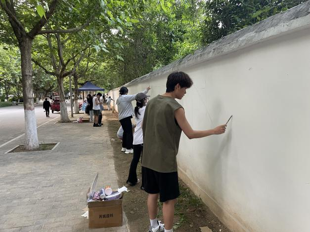 同学们兴致勃勃,积极参与,团结合作,贡献创作灵感,融入浓浓的爱校之情,将创意跃动于校园的墙面。在墙绘过程中,也有许多同学们驻足观赏,并与墙绘合影留念。