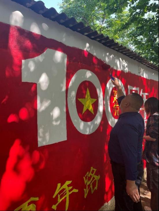 墙绘开始前,院团委书记坚强、团委副书记吕文静召集参与墙绘的同学们,分配任务并发放墙绘材料。同学们立足于艺术生的的思维特点和认知规律,将形式新颖、内容丰富的“墙绘”作为传声筒,传递爱国情怀。百米长卷包含着中国共产党成立百年来,带领中国人民艰苦奋斗所取得的一系列成就,也展示了培华建校95年来取得的建设成果,既体现着培华学子的荣誉感与归属感,更是青年人厚植家国情怀、涵养进取品格,以奋斗姿态激扬青春,不负时代,不负华年的青春信仰。