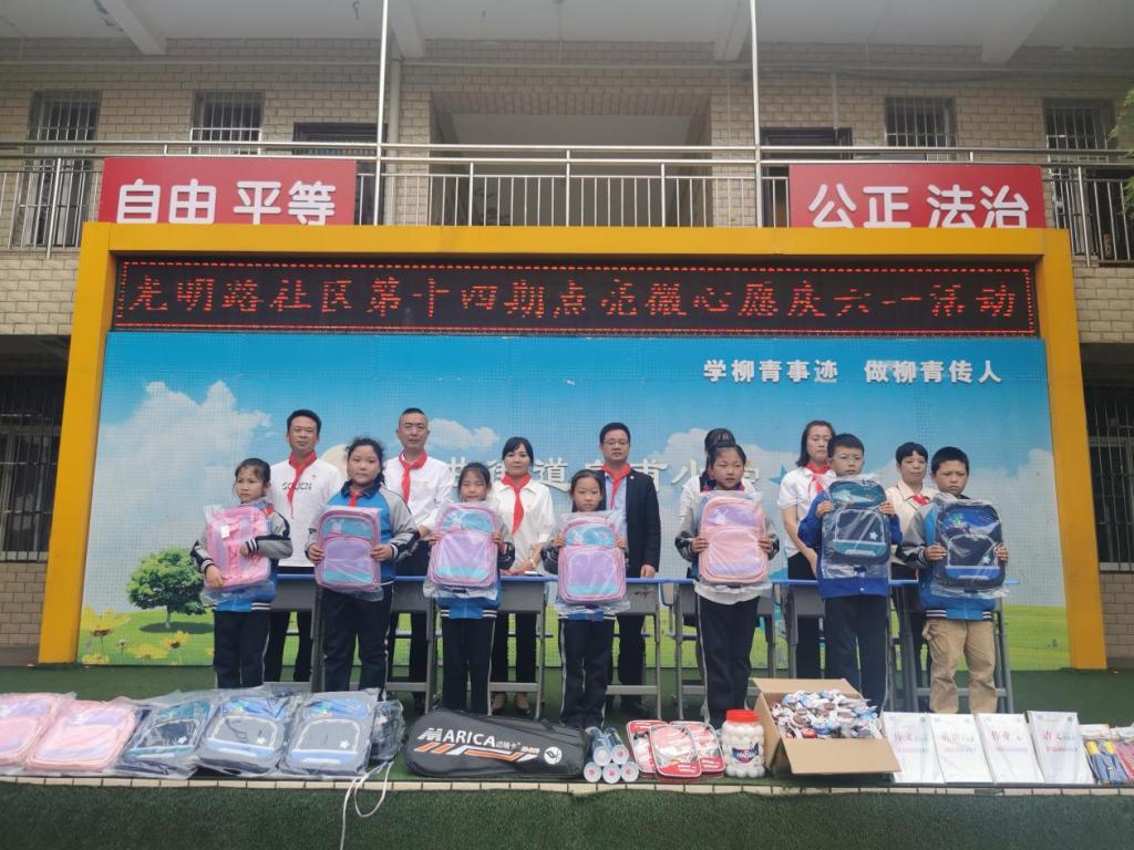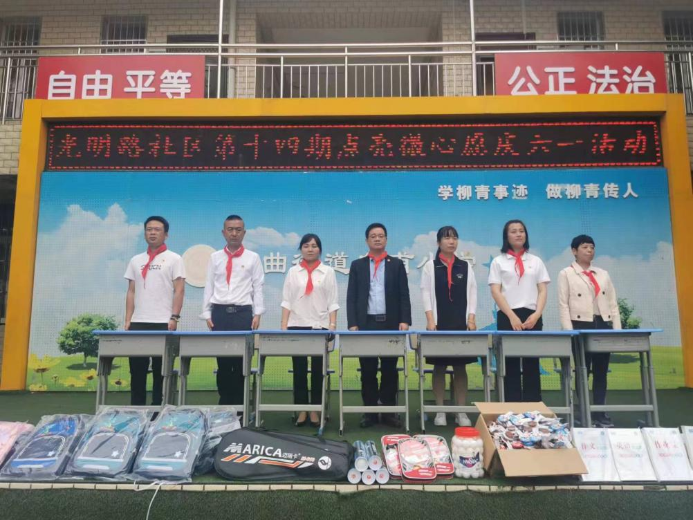 学院党委王飞书记和光明路社区党委孙书记对小朋友们寄予美好期望,祝愿小朋友们节日快乐,并送上书包、篮球、乒乓球、文具等慰问品。勉励小朋友们从小锻炼身体,养成强健体魄,认真学习,培养过硬本领,自强不息,努力成为德智体美劳全面发展的社会主义建设者和接班人。