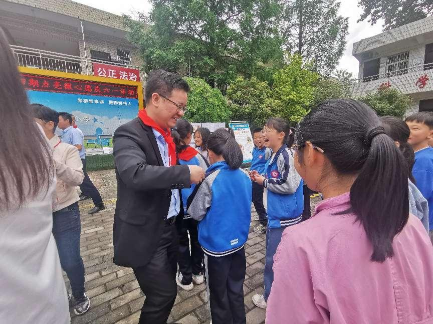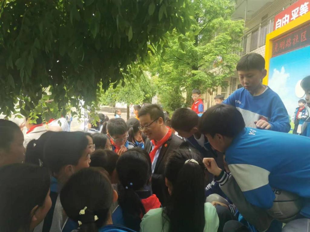 活动中,王书记、孙书记为小朋友们分发糖果,并亲切地交谈,孩子们积极地交流学校学习情况和在家的生活和思想状况,并表示在以后的学习生活中要好好学习,争做新时代好少年。