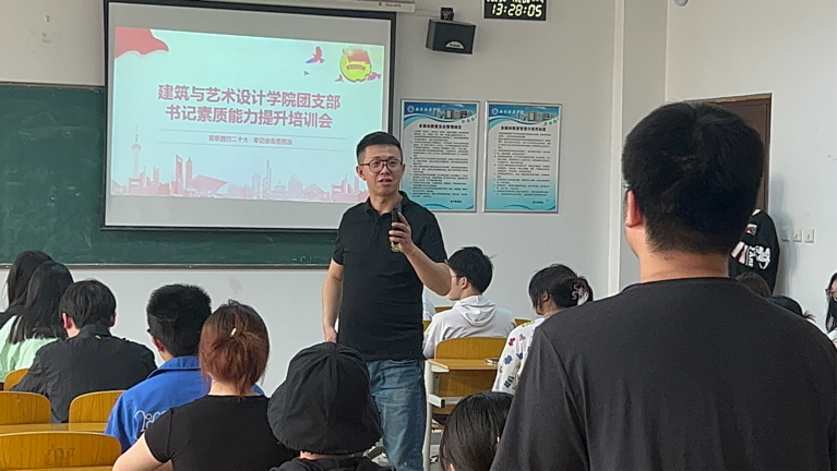 建筑与艺术设计学院团委书记坚强老师在本次工作部署会议中,分别通过青年大学习的落实与完成情况、对于各级支部团支书班级工作的要求、姜维之班创建以及如何开展落实各级各支部团员教育评议四个主要内容进行了细致的讲解。