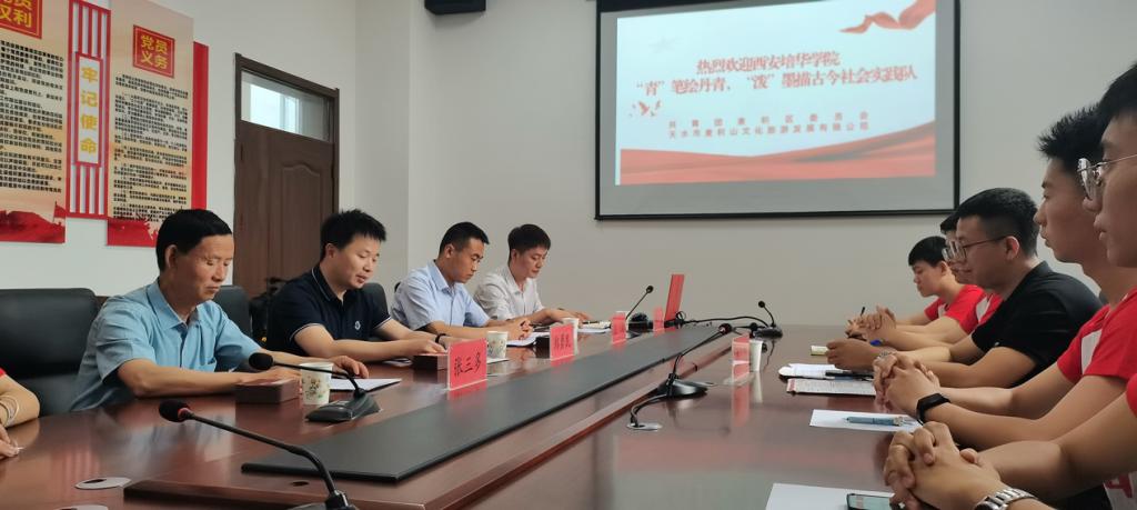 西安培华学院建筑与艺术设计学院团委坚强书记对团麦积区委、天水市麦积山文化旅游发展有限责任公司运营分公司、天水智慧旅游股份有限公司、天水市汉唐麦积山艺术陶瓷有限公司经理、麦积山雕塑博物馆,对我院2023年大学生暑期“三下乡”社会实践活动的支持表示感谢。并就学院的基本情况进行简单介绍,紧抓“三下乡”社会实践契机,加强校企合作,校地联动,在推动乡村振兴等方面贡献力量。