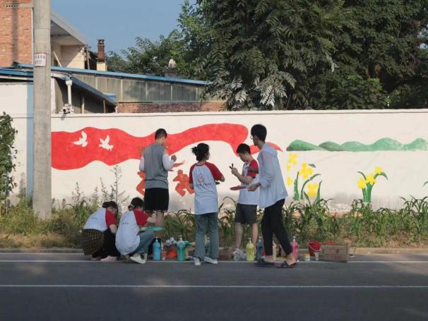 为贯彻落实习近平新时代中国特色社会主义思想,助力乡村振兴,打造生态宜居、乡风文明的新时代新农村。青春逐艺梦社会实践团队14名队员于7月5日赴陕西商洛丹凤县梨园村开展“三下乡”社会实践活动。从清晨到日暮,顶着炎炎烈日,队员们保持着高度的热情,投入到乡村振兴的墙体绘制中。依托专业所学,用专业视角与审美,助力做好乡村墙体美化。也在社会实践的过程中深入乡村开展调研,帮助当地有困难的村民解决实际困难。“时代各有不同,青春一脉相承。”此次实践活动用自身的力量与知识,为美化乡村贡献了自己的一份力量。队员们积极向上,开朗热情,不畏风吹日晒,起早贪黑的投入,彰显着新时代新青年的精神风貌。