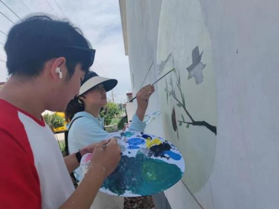 为贯彻落实习近平新时代中国特色社会主义思想,助力乡村振兴,打造生态宜居、乡风文明的新时代新农村。社会实践团队14名队员于7月5日赴陕西商洛丹凤县梨园村开展“三下乡”社会实践活动。本次墙绘以梨园村沿山村庄墙体为主体,结合新农村建设与规划,打造美丽乡村。酷暑拦不住奋斗的脚步,高温抵不过青春的激昂。35面墙体,在队员们看来,是一面面平整的画布,他们更愿意用手中的画笔,为乡村振兴助力,为美丽中国代言。从清晨到日暮,顶着炎炎烈日,队员们保持着高度的热情,投入到乡村振兴的墙体绘制中。依托专业所学,用专业视角与审美,助力做好乡村墙体美化。也在社会实践的过程中深入乡村开展调研,帮助当地有困难的村民解决实际困难。