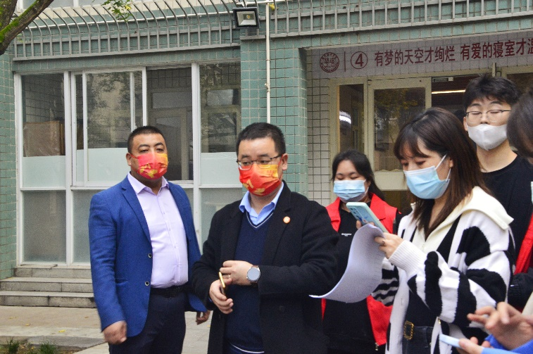 检查过程中,检查小组对疫情期间积极参加公寓志愿活动的同学进行了慰问。检查小组详细了解了志愿者储备、值守轮换、后勤保障等工作情况。认真询问志愿者们的工作开展情况和工作中遇到的困难,鼓励大家继续坚守好各自岗位,做好自身防护。同时,对疫情防控期间学生志愿者们“逆行”而上、挺身而出的勇气和毅力表示赞扬与肯定,表示志愿者们用实际行动展示了青年学生的担当精神,彰显了我院学子的优良风貌,并鼓励大家将这种默默无闻的奉献精神继续发扬下去