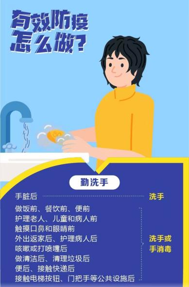 3.保持个人卫生和环境卫生,勤洗手,常通风。饭前便后、触摸眼、口、鼻之前,接触垃圾、排泄物之后要用肥皂或洗手液洗手,不方便洗手时可使用免洗手消毒剂;