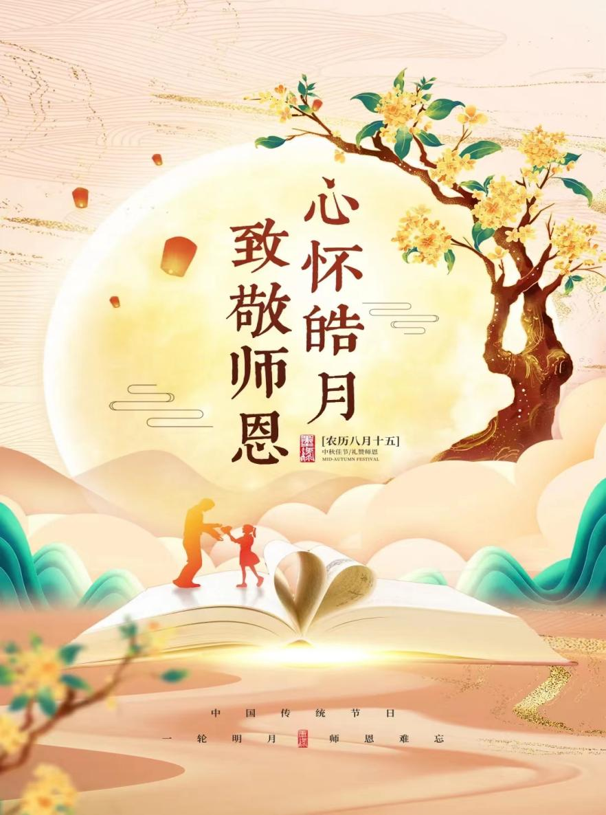 “心血育桃李,辛勤扶栋梁”,今天是教师节,同样也是中秋节。老师们的诲人不倦,无私奉献的精神滋养着我们。这种无私、伟大的爱给我们温暖和力量,促使每一个学生实现自己的梦想,到达胜利的彼岸。祝老师中秋节快乐,教师节快乐,双重快乐。