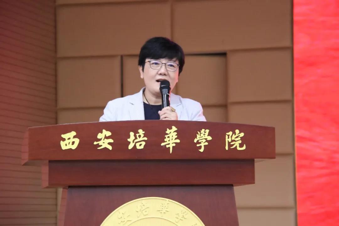 秦丽云老师说:“非常感谢你们能够选择培华这个大家庭,让我有幸遇到如此优秀的学子们。正如尚老师所说大学是一个新的阶段,不论高考成绩是否理想,我们更应该向前看,我相信在座的大部分人直到现在还不曾确定自己到底想要什么,我希望你们能在这几年明晰自我。最后毕业时,只要感到自己没有留下遗憾,便也算一种成功,我尊重每个学生的梦想,更祝愿你们不负韶华,年轻有为。”