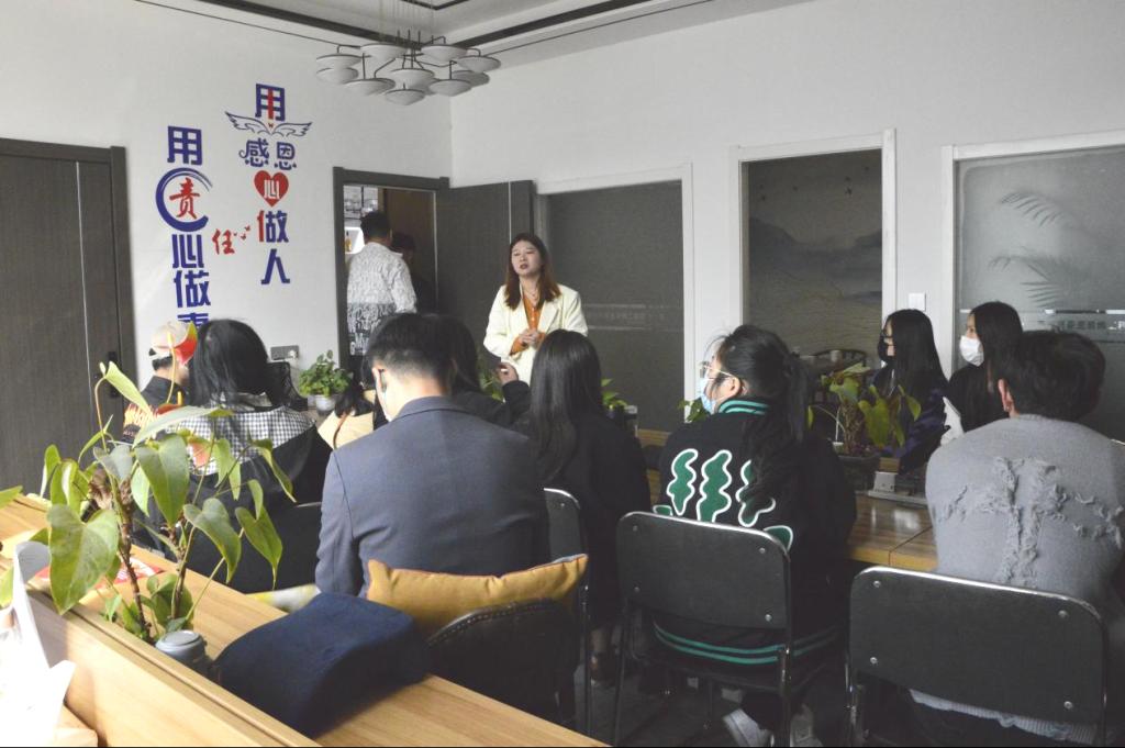 为响应国家“六稳六保”号召,进一步促进就业工作“全程化、全员化、专业化、信息化、精准化”,落实立德树人根本任务,全面贯彻三全育人,扎实做好2023届毕业生就业工作,开拓更多就业创业岗位。在我院开展首场院长书记“直播带岗”后迎来广泛响应,3月6日早9点,建筑与艺术设计学院党委副书记南斌红带领专业老师和辅导员,化身“快递小哥”,将18名2023届毕业生,“送达”西安鼎峰装饰工程有限责任公司,搭建校企合作交流平台,让学生近距离接触企业运营,了解企业文化,与求职岗位直接“对话”,打通学生就业最后一米线。