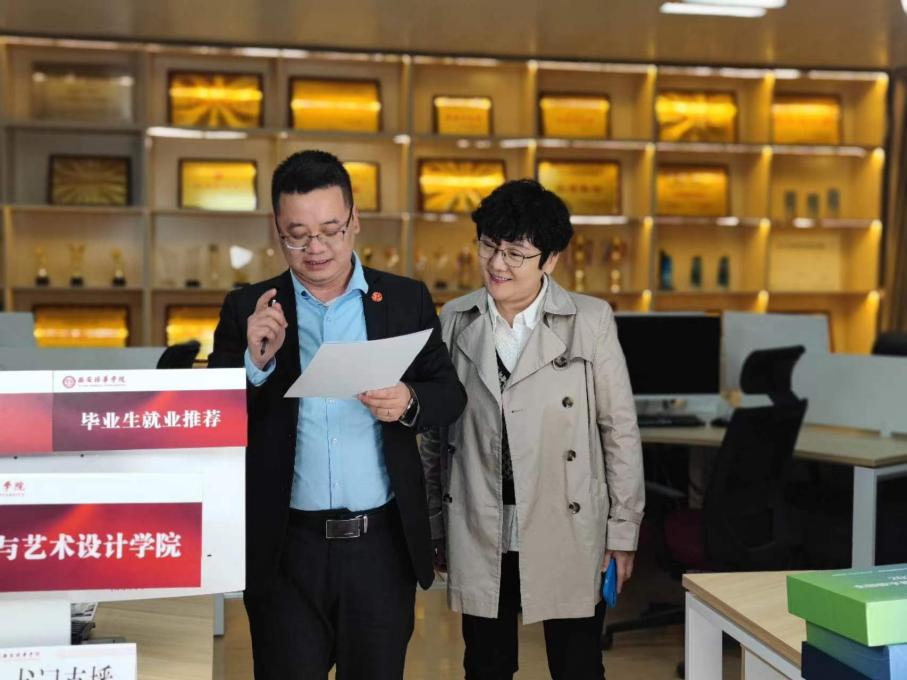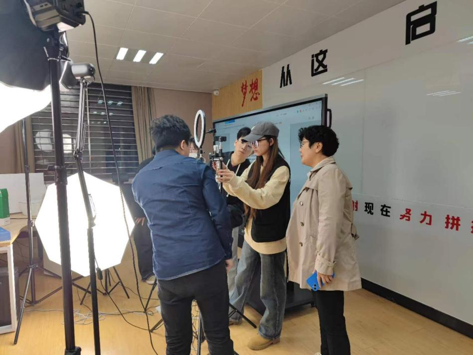 本次直播主要由建筑与艺术设计学院党委书记兼行政副院长王飞,环境设计专业教师陈星雨直播推荐学生。直播前,建筑与艺术设计学院常务副院长徐莹、建筑与艺术设计学院党委副书记南斌红、工程造价系主任杨锦、工程造价系副主任郗茸、校、院两级宣传部门学生提前来到直播教室,再次熟悉直播内容,调试设备,做好充足的准备工作。