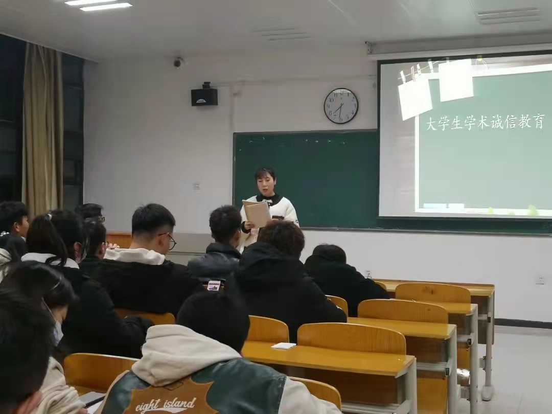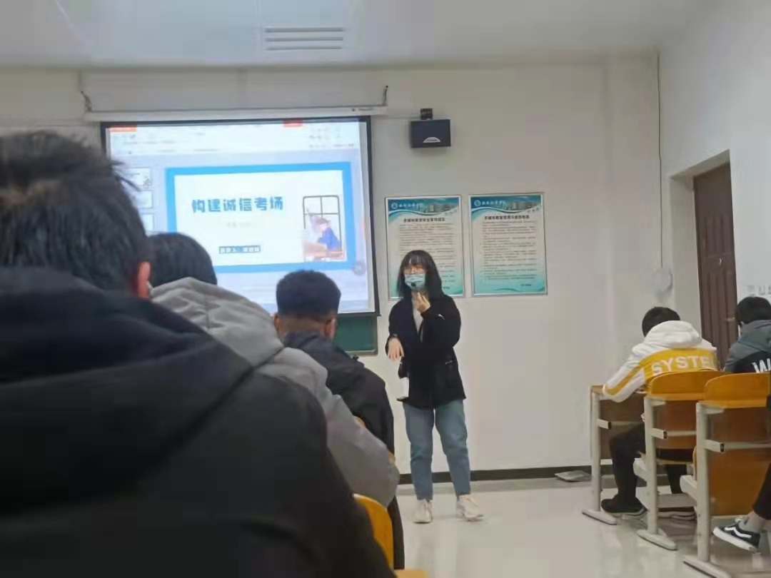 为进一步加强学风建设,培养学生以诚信考试为荣,以考试舞弊为耻的观念,坚决遏制考试作弊不良风气,坚决杜绝各种考试舞弊行为,营造浓厚的学习氛围,培养学生良好的学习品质。我院于2021年11月28日召开以“诚信考试,杜绝作弊”为核心的主题班会,并签订诚信考试承诺书。加强同学们诚信考试的意识,认识到诚信考试的重要性。